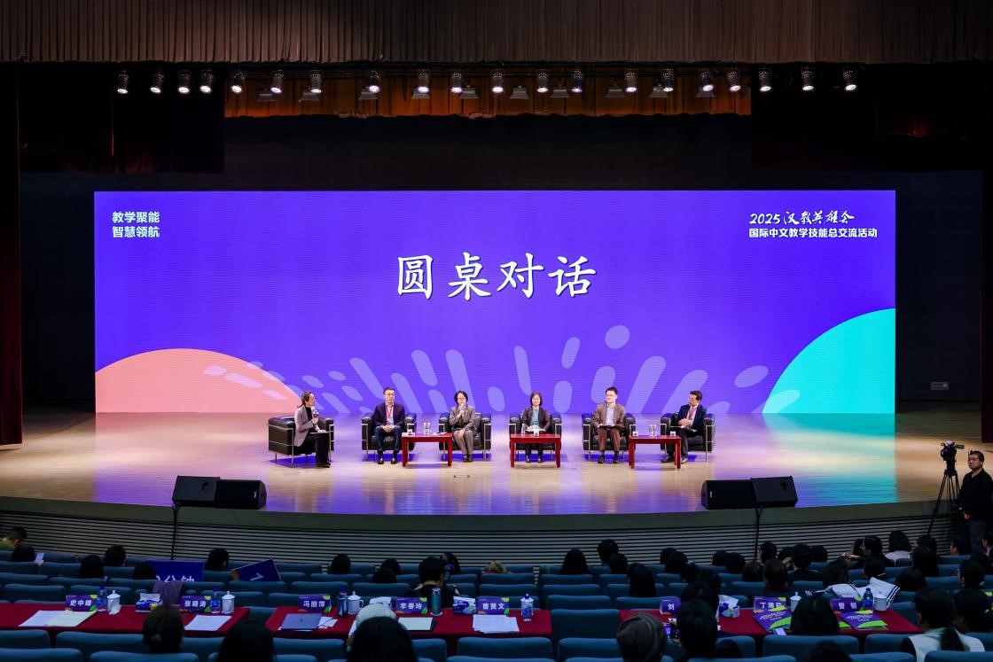 圆桌对话环节,专家们围绕本次交流活动的主题“教学聚能·智慧领航”,就本次活动的课程特色、教学亮点、数智实践等议题展开深度畅谈。对话聚焦《国际中文教师数字素养参考框架》落地应用,探讨教师数智化素养提升路径以及技术赋能与教育本质的平衡之道,围绕教学研究转化、一线教师专业成长等问题剖析探讨,追溯“汉教人”的从业初心与教育理想,为青年教师指明职业成长方向。外研社中国语言文化出版分社总编辑鞠慧主持了圆桌对话。